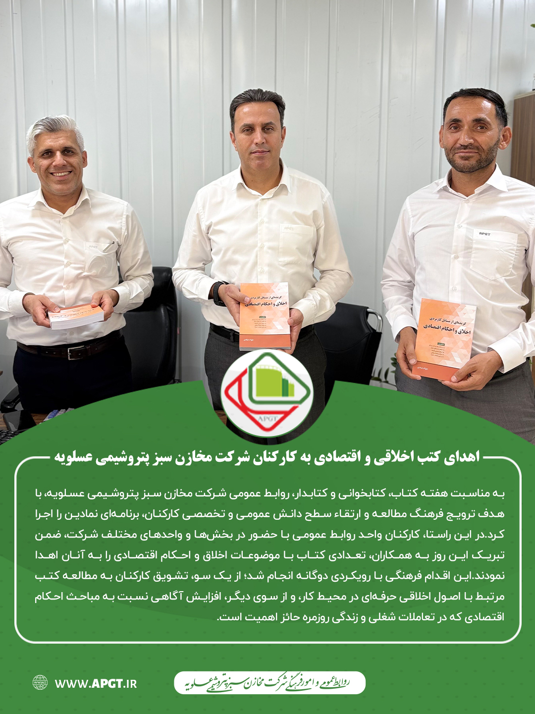 اهدای کتب اخلاقی و اقتصادی به کارکنان شرکت مخازن سبز پتروشیمی عسلویه