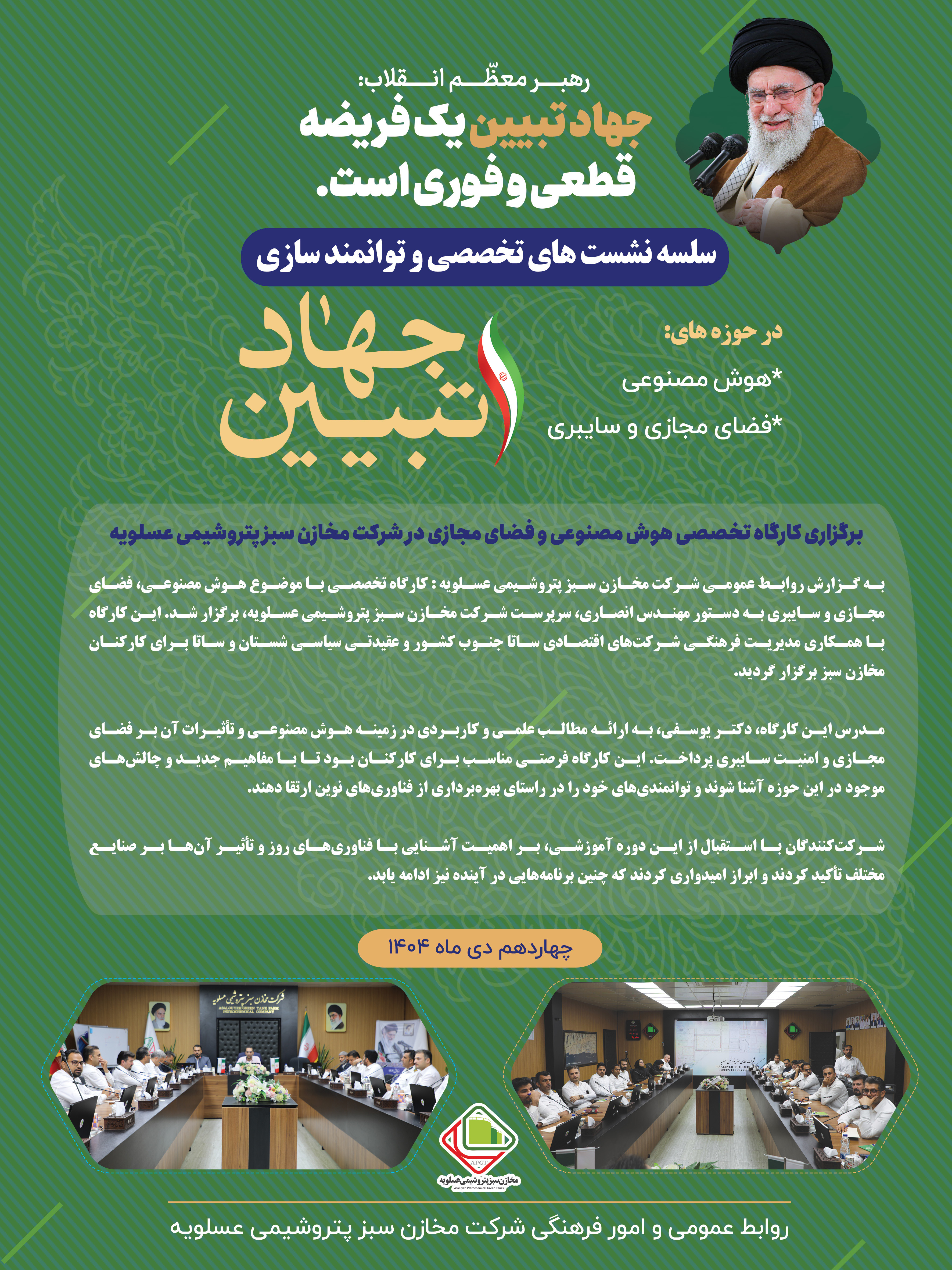 برگزاری کارگاه تخصصی هوش مصنوعی و فضای مجازی در شرکت مخازن سبز پتروشیمی عسلویه