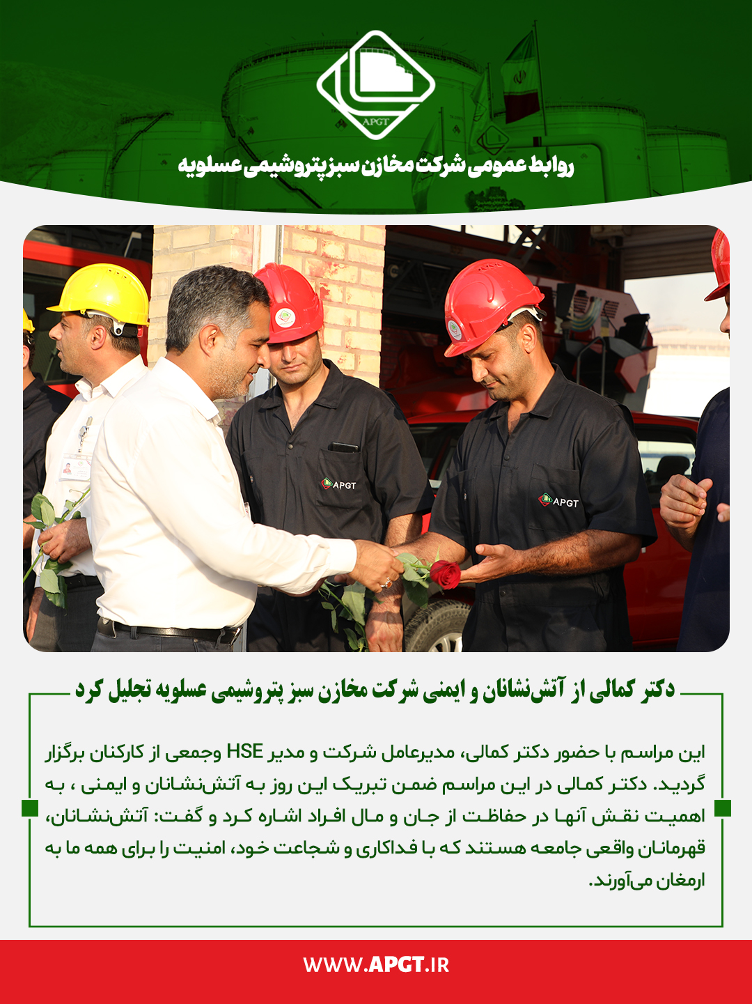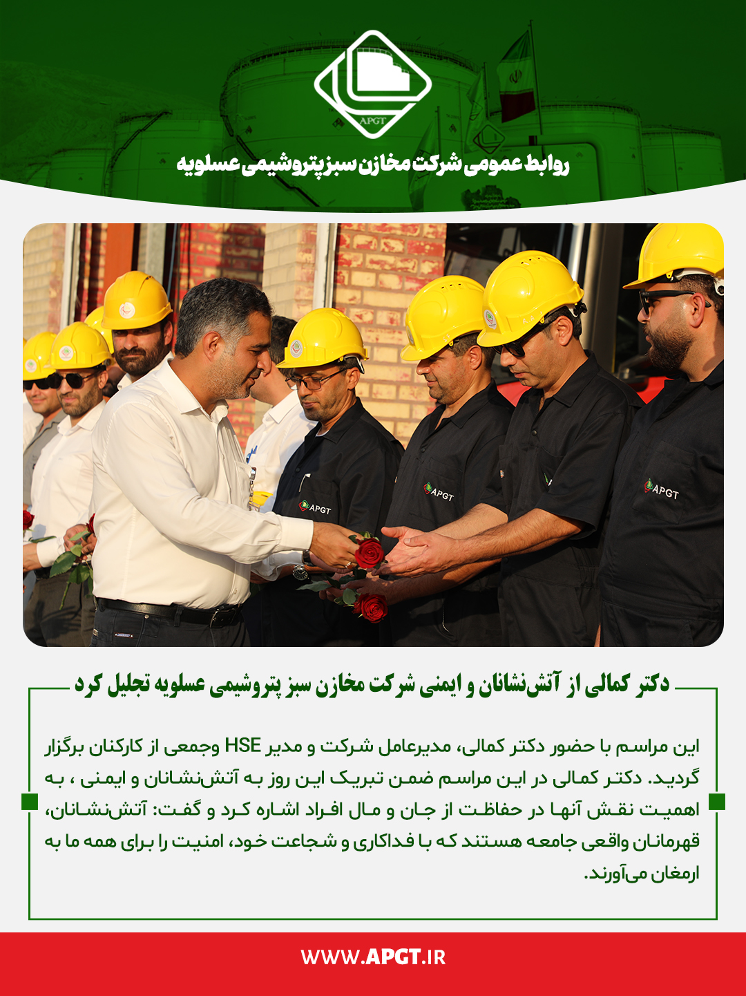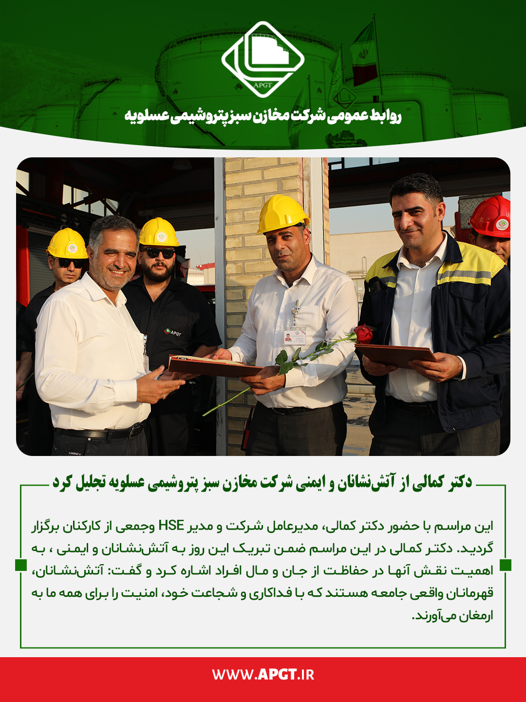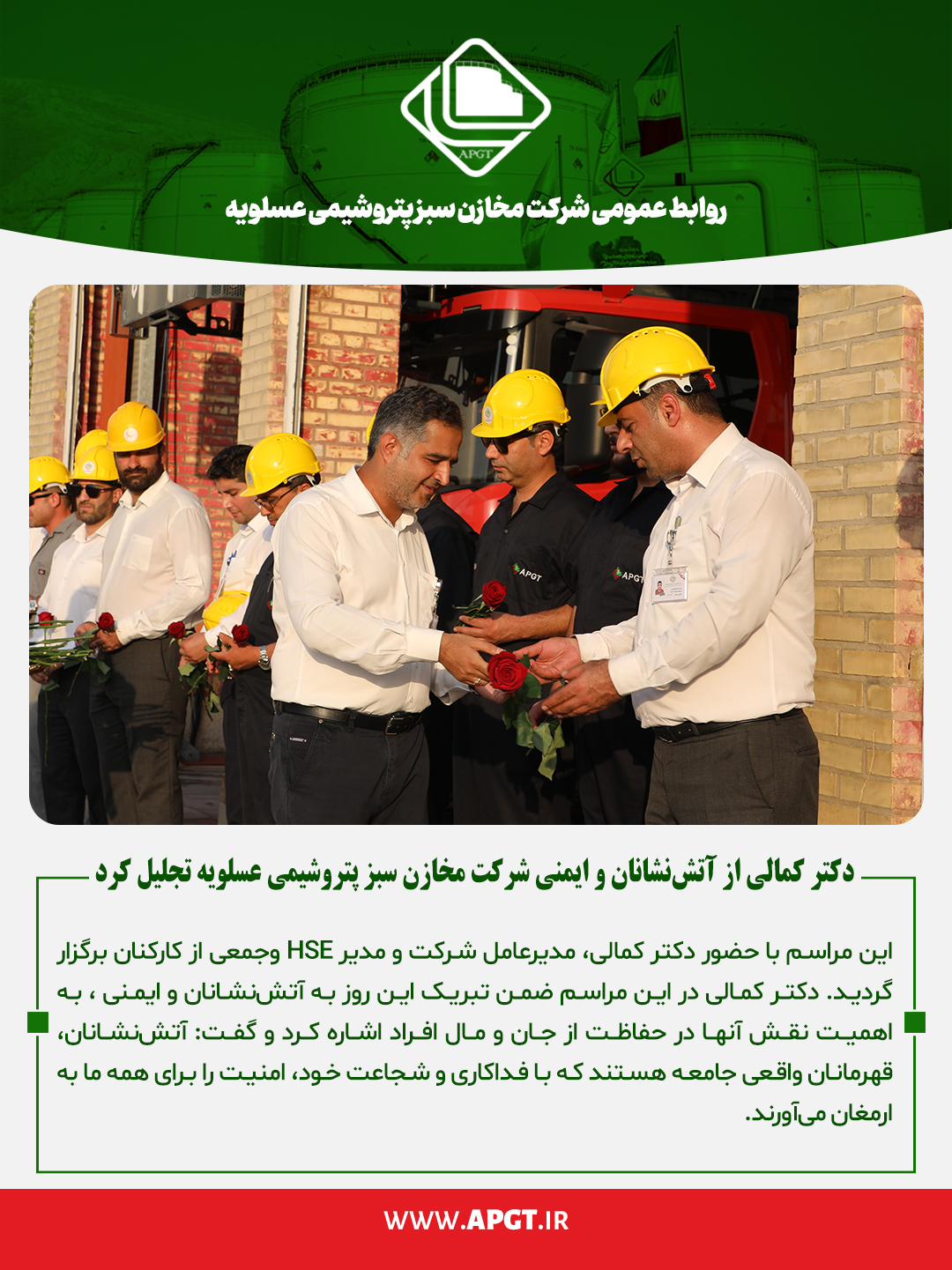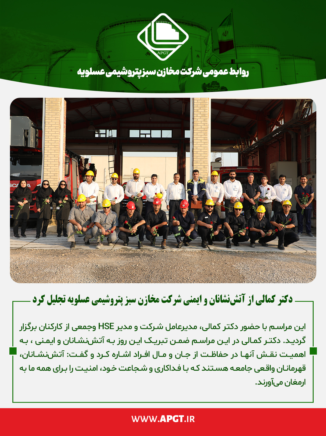 تجلیل از آتش نشانان و ایمنی در شرکت مخازن سبز پتروشیمی عسلویه